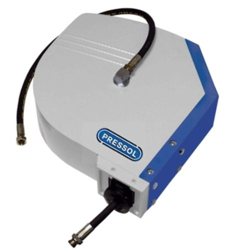 Pressol-Schlauchaufroller sind äußerst robust und zeichnen sich durch ihre kompakte Bauweise aus. Alle Metallteile sind phosphatiert, unterbeschichtet und lackiert. Die hochwertige Oberflächenbehandlung aller Stahlteile gewährleistet eine hohe Korrosionsbeständigkeit. Achse (Ø 40 mm) der Druckgussteile. Die von unseren Ingenieuren ausgewählten Abmessungen sorgen für eine nahezu unbegrenzte Lebensdauer. Die Materialkombination Achse/Lager und die Federeinheit sind wartungsfrei. Einfache Montage, da das Gewicht der Schlauchtrommel bei der Montage nicht abgestützt werden muss. Alle Drehgelenke sind kugelgelagert